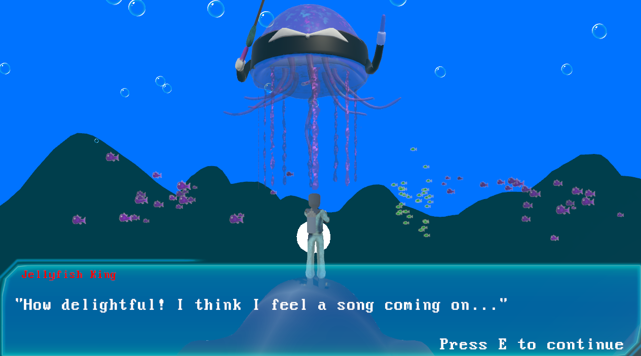 Deepwater Escape is a single-player shooter-platformer set deep underwater. You are on a top-secret mission to extract the Panacea. After obtaining it, your submarine is attacked, forcing you to navigate the seafloor while battling sea creatures and jumping across platforms.